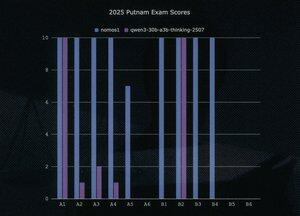 Nomos 1 هو نموذج مفتوح المصدر بحجم 30B حصل للتو على تقييم 87/120 في بوتنام لهذا العام، وهو ما يكفي لتقدير #2/3988، مما يدل على أنه قريب من القمة