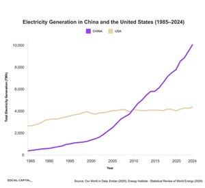 وفي نفس الفترة، وسعت الصين الطاقة 7 مرات لتصل إلى حوالي 10,000 تيراواط ساعة.