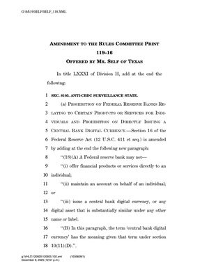 🚨AKTUÁLNÍ: Podal jsem pozměňovací návrh, který přidává zákaz digitální měny centrální banky (CBDC) do zákona o národní obraně (NDAA).