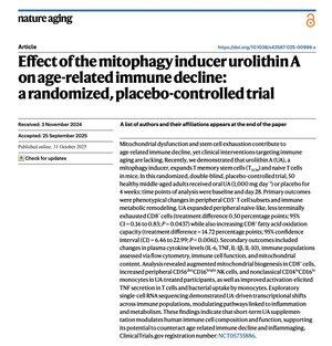 Suplementace urolithinem A může zlepšit imunitní funkce, jak stárneme, kromě zlepšení svalové síly, výkonu při cvičení a biomarkerů mitochondriálního zdraví, včetně mitofágie.