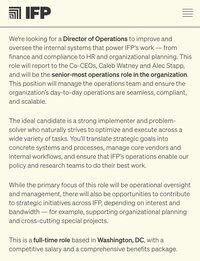Přijímáme provozního ředitele, který bude zlepšovat a dohlížet na interní systémy, které pohánějí práci IFP – od financí a dodržování předpisů až po lidské zdroje a organizační plánování.
