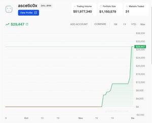 Trader ascetic0x začal s 12 dolary a nyní je na 39 tisících dolarů poté, co vsadil all-in na další sázku. Nyní má nerealizovaný zisk ve výši 11 000 dolarů. Účet: