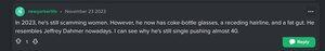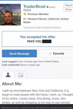 Místo aby přijal, že je outsider, a podle toho začal randit, rozhodne se najít mladší ženy na sugar webech. A pak je také podvádí?