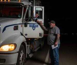 Starteten einen Code. "Code Engel" nennen wir es. Wenn Fahrer jemanden sehen, der liegen geblieben ist, gestrandet, in Schwierigkeiten, halten wir an. Wir helfen.