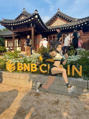 Jemand hat mich beim Laufen gesehen und ein Foto gemacht. Ziemlich süß, es war bei #BNBSeoul @BNBCHAIN 🖤💛