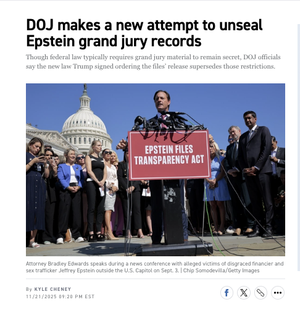 NEU: Das DOJ sagt, dass das von Trump unterzeichnete Epstein Files Transparency Act die Geheimhaltung der Grand Jury aufhebt und die öffentliche Freigabe von Epstein/Maxwell-Beweisen erfordert, die zuvor durch Bundesrecht geschützt waren.