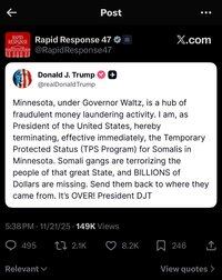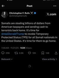 We broke the Somali fraud story and called on President Trump to revoke the Temporary Protected Status for all Somalis. Now, the President has delivered. This is how we win. ⚔️