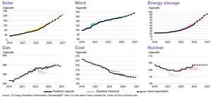 Perspectiva interesante. BNEF, utilizando datos de la EIA, compara la capacidad planificada esperada y realizada hasta el '27. El gas tiene un aumento, pero no es vertical de ninguna manera (podría deberse parcialmente a las jubilaciones esperadas existentes que procederán atenuando el impacto de la nueva capacidad de gas que entre en servicio).