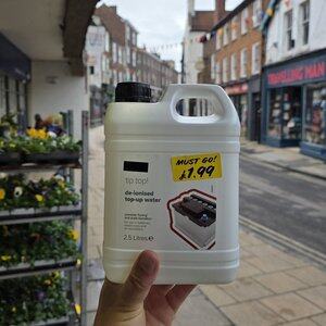 Es solo agua destilada, pero aparentemente eso no existe en el Reino Unido, así que tuve que ir a una tienda de coches 💀