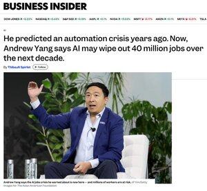 "El 44% de los trabajos estadounidenses son manuales repetitivos o cognitivos repetitivos y, por tanto, podrían estar sujetos a la IA y la automatización", dijo Yang en la entrevista con CNN. "Estamos viendo cómo se desarrolla eso ahora mismo."