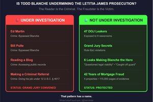EXPUESTO: El fiscal adjunto Todd Blanche está buscando a quienes supuestamente lo pasaron por alto, mientras que 47 filtradores que sabotearon la acusación contra Letitia James permanecen sin ser detectados.
