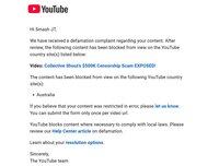 Esto no es difamación en absoluto... y yo diría que tampoco es trabajo de YouTube determinar eso.