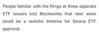 Por cierto, tres emisores de ETF dicen que *la próxima semana* podría ser un plazo realista para la aprobación del ETF de sol al contado...