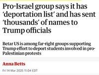 Tämä on sama ryhmä, joka on työskennellyt ulkoministeriön kanssa luodakseen listoja palestiinalaismielisistä karkotettavista aktivisteista.
