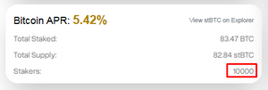 Saavutimme äskettäin 10 000 ainutlaatuista panostajaa stBTC:hen. Monet ovat Bitcoinereita, jotka eivät ole KOSKAAN aiemmin olleet ketjussa (ja lähettivät minulle kuvakaappauksia siltaprosessistaan iloisesti). Tälle me rakennamme.