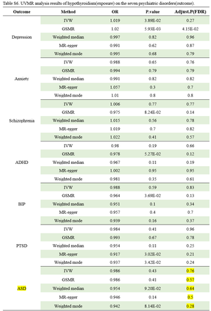 Päinvastoin kilpirauhasen vajaatoiminta ei vaikuta liittyvän syy-seuraussuhteeseen mihinkään näistä psykiatrisista häiriöistä (kuva alla).