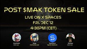 Rejoignez-nous demain pour un X Spaces communautaire après la vente de tokens $MAK, avec un invité spécial de @SuperReturnAI.