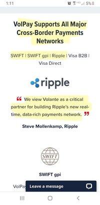 Exemple d'un fournisseur de technologie SWIFT tiers, Volante, qui est activé par Ripple grâce à un partenariat, permettant à XRP d'être utilisé sur le réseau SWIFT en tant que jeton conforme à l'ISO 20022.✅