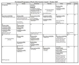 Voici le programme du Conseil de sécurité de l'ONU pour octobre (alors que l'ONU a un représentant absent, @AntonioGuterres, au Soudan du Sud et envisage d'abandonner le Palais Wilson à Genève, interdit Inner City Press et ne répond pas à ses questions) - le grand débat est l'ONU vers l'avenir (de la censure)