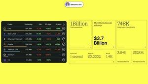 Le volume mensuel des stablecoins s'élève à 3,2 milliards de dollars, avec 1 milliard de transactions au total traitées depuis le lancement.