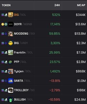 Koin Pumpfun teratas selama 1 jam terakhir berdasarkan volume: $Fartcoin $Franklin $Pippin $Moodeng $Sminem