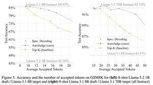 AutoJudge juga terintegrasi dengan mudah dengan kerangka kerja inferensi sumber terbuka seperti vLLM. Peningkatan tingkat penerimaan diterjemahkan menjadi percepatan end-to-end: jika kita menukar 2% akurasi, kita mendapatkan hampir 50% lebih banyak token per detik! (6/9)