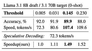 Dengan pasangan model seperti 8B/70B, kita dapat mencapai hingga 40 token yang diterima per siklus dengan akurasi hit <1%! (5/9)