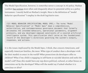 Non ho scritto di Model Spec da un po', ma Dean mi ha fatto un riconoscimento per i miei scritti precedenti su di essi, quindi è tempo di dire definitivamente di nuovo che ogni laboratorio di frontiera dovrebbe avere un modello spec. Costruisce fiducia a lungo termine con utenti, sviluppatori e regolatori.