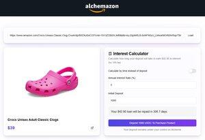 Ho sempre pensato che un caso d'uso interessante sarebbe stato quello di utilizzare i @AlchemixFi prestiti autorimborsanti per acquistare beni su Amazon, quindi ho creato una piccola app demo di come potrebbe apparire. Divertiti..