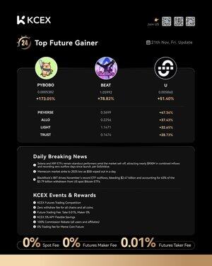 #KCEX デイリーレポート 11.21!🔥 📈 現在のトップパフォーマー: 1️$PYBOBO/USDT:+173.05%! @Capybobo_io 2️$BEAT/USDT:+78.82%! @Audiera_web3 3️$U/USDT:+51.40%! @union_build 4️$PIEVERSE/USDT:+47.36%! 5️$ALLO/USDT:+37.43%! 6️$LIGHT/USDT:+32.65%! 7️$TRUST/USDT:+28.73%!