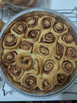 妻がこのシナモンの傑作をオーブンから取り出したところです プランBが発動しました
