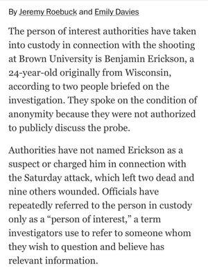 🚨 報告:ブラウン大学銃乱射事件の容疑者はウィスコンシン州出身の24歳ベンジャミン・エリクソンと特定 アメリカ陸軍のサイバー戦将校であり、ウィスコンシン大学マディソン校の卒業生です。