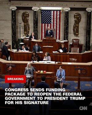 下院は連邦政府を再開する法案を承認した。この法案は、米国史上最長の政府閉鎖を終わらせるためにトランプ大統領が署名しなければならない。