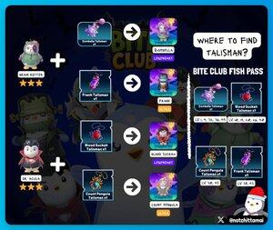 バイト クラブ フィッシュ パスを購入することを忘れないでください、ペングラ伯爵とフランクをアップグレードするための超レアなお守りを入手してください。