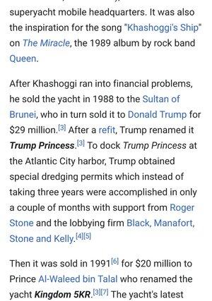 Husker du på 80-tallet, da Jamal Khashogghis våpenhandler-milliardær-onkel hadde en sang skrevet av Queen om yachten sin, og så kjøpte Donald Trump båten med hjelp fra Roger Stone.