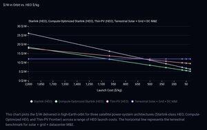 Kostnaden for strøm er lavere per watt i rommet enn på jorden når oppskytingskostnadene faller under 1 000 dollar/kg. (~$2 000/kg i dag, og Starship er ~$700/kg forbrukspliktig)