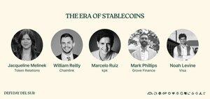 Avslutningsvis, et av de heteste temaene: stablecoins, med @jacqmelinek fra @TokenRelations, William Reilly fra @chainlink, @claberus fra @kpk_io, Phillips fra @grovedotfinance og @nlevine19 fra @Visa.