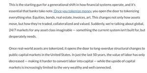 Uansett, vent til de finner ut at hvis du kan tokenisere en dollar, finnes det mye annet du kan tokenisere, og det skjer også. Fest setebeltet!!