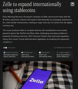 Zelle breidt officieel internationaal uit via stablecoins voor grensoverschrijdende betalingen.