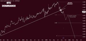 #Bitcoin Dominance heeft officieel zijn meerjarige opwaartse trend doorbroken.