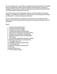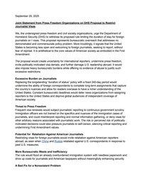 Proponowane ograniczenia wizowe dla dziennikarzy pokazują, że USA są „mniej otwarte i przyjazne dla zagranicznych dziennikarzy… Jest to sprzeczne z podstawowymi wartościami amerykańskiego społeczeństwa, które są uosobione w Pierwszej Poprawce.”