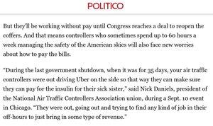 Kontrolerzy ruchu lotniczego pracują bez wynagrodzenia podczas wstrzymania działalności rządu:
