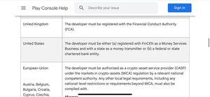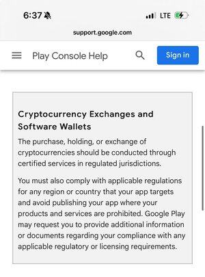 O Google anunciou em 10 de julho uma política atualizada de troca de criptomoedas e "carteira de software" que se aplica a qualquer pessoa que queira oferecer seu aplicativo de criptomoedas por meio da Google Play Store. Revisando os requisitos regulatórios que eles listam para certas jurisdições, parece que "carteira de software" significa carteira de custódia, mas isso está longe de ser claro. Eles não definem o termo e não reconhecem que o registro como MSB é algo que o FinCEN não exigiu específica e claramente.