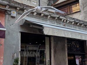 Uma das gaivotas que rouba pizzas no Campo Santa Margherita em ação.