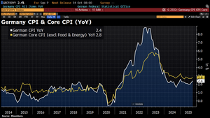 Caso tenha perdido: a inflação na Alemanha subiu mais rápido do que o esperado em setembro. O IPC geral subiu para 2,4% em relação ao ano anterior, contra 2,2% em agosto, impulsionado em parte pela queda menor nos preços da energia. Mais preocupante, a inflação subjacente também aumentou de 2,7% para 2,8%, mostrando que é mais teimosa do que o antecipado.
