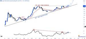 O TOTAL3 está perto de romper acima do nível de resistência principal de 3,8 anos no gráfico mensal.