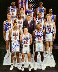 Primeiro, uma foto assinada do Dream Team. Depois, todos os Hall of Famers vivos em um cartão de novato.