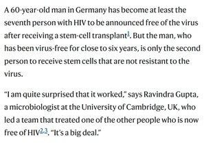 Acum suntem la ȘAPTE persoane vindecate de HIV după ce au primit transplanturi de celule stem. Acești oameni erau tratați pentru cancer, au primit transplanturi de măduvă osoasă și s-au trezit rezistenți la HIV.