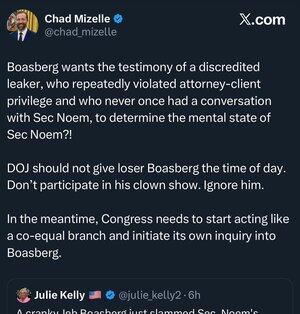 Боасберг пытается выяснить, советовали ли люди из Министерства юстиции Кристи Ноем и другим игнорировать судебный приказ.