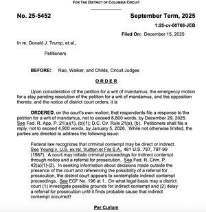 Судьи Рао/Уокер отложили слушания по делу о неуважении к суду судьи Боасберга как минимум до Нового года. И они хотят знать, есть ли у него полномочия расследовать неуважение к суду или он должен передать это в Министерство юстиции.